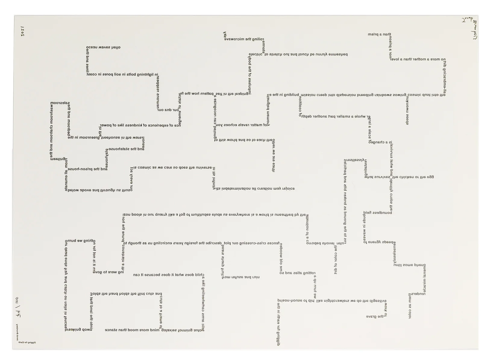 Typografisch experiment is in zichzelf het doorbreken van conventies. Dat gebeurt deels door het kapen van die conventies en het hergebruiken van de officiële (beeld)taal waartegen je je verzet. Logo's, reclames, stadsgeografie – alles wordt materiaal voor je eigen werk.
