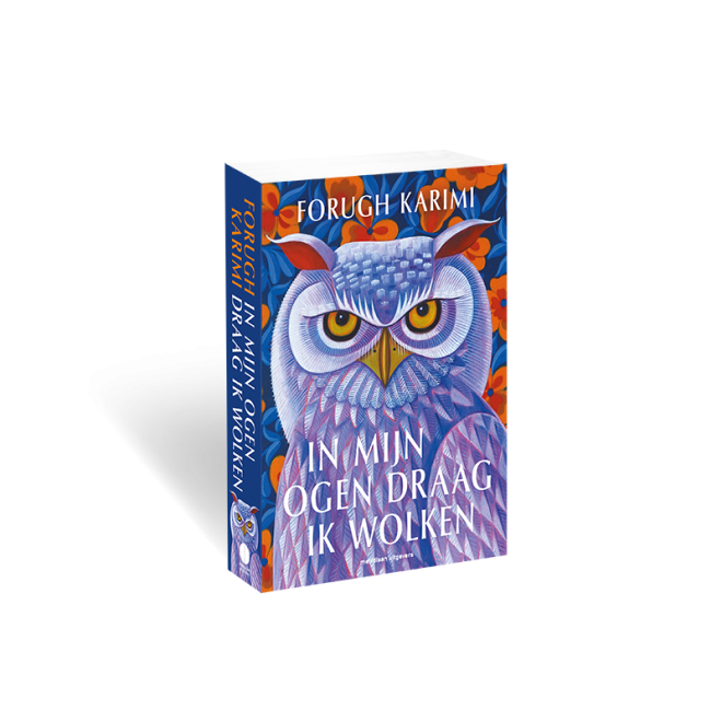 Vanaf de omslag van het gloednieuwe boek van Forugh Karimi kijkt een kleurrijke uil ons indringend aan. Al gauw leren we in In mijn ogen draag ik wolken (2025, Meridiaan) dat uilen in Afghanistan geen boodschappers van wijsheid maar van rampspoed zijn. In deze nieuwe roman sleurt de Afghaans-Nederlandse auteur en psychiater – die zelf op haar vijfentwintigste uit Kabul naar Nederland vluchtte – je mee in het vluchtverhaal van Widá. Karimi verweeft Widá’s familieverhaal met hartverscheurende delen van de Afghaanse geschiedenis die je na dit boek niet meer zult vergeten. We spraken Forugh Karimi over het schrijven van In mijn ogen draag ik wolken, het belang van fictie en waarom ze Widá’s verhaal graag wilde vertellen.