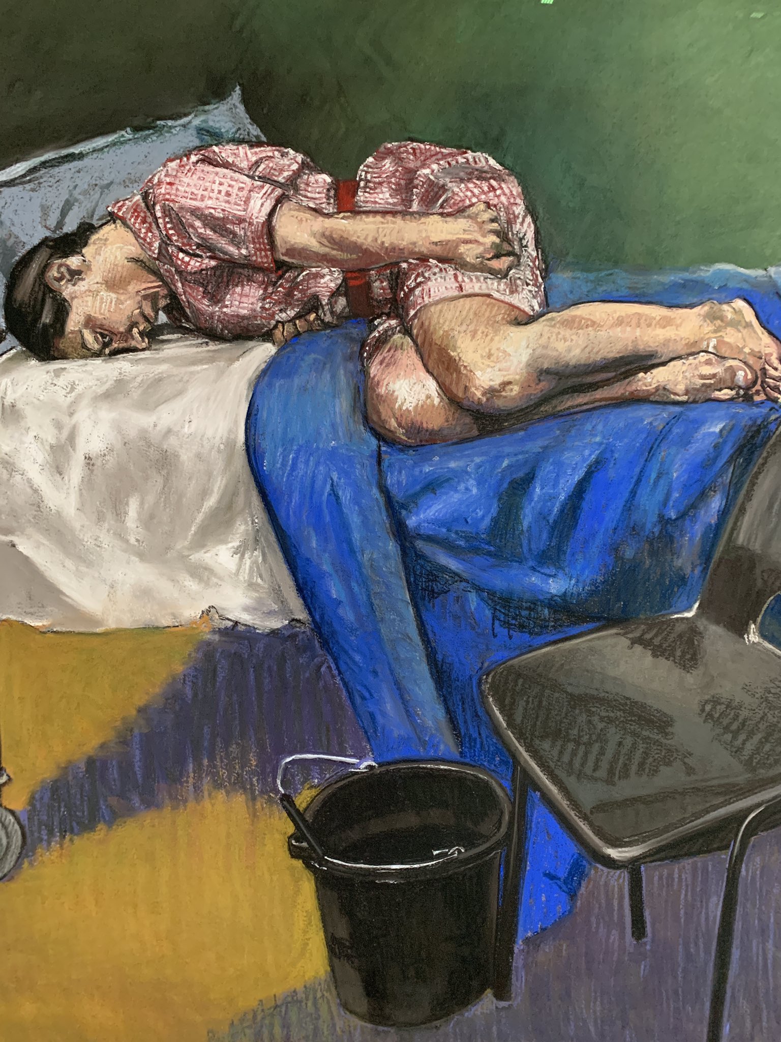 En daar zie ik de schilderijen van Rego weer voor me. Waarin ze zich nadrukkelijk als narratieve kunstenaar presenteert. Verhalen en taboegeschiedenissen naar boven trekt. Het verborgene zichtbaar maakt. Bijvoorbeeld in de aangrijpende abortusschilderijen. Maar ook in de reeks Possession (2004), waarover kunsthistorica Wieteke van Zeil opmerkte dat die geïnspireerd is door 19e eeuwse foto’s van vrouwen die de diagnose ‘hysteria’ kregen.
