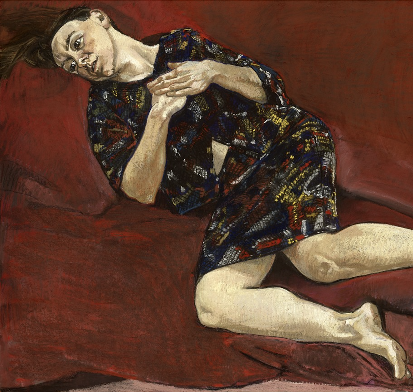 Vrouwen, liggend op cognackleurige versleten leren banken. In houdingen die totaal afwijken van die waaraan we als kijkers gewoon zijn. Vertrouwd als we zijn met vooral naakte, uitgestrekte vrouwen die de blik afwenden of juist die van de (mannelijke) toeschouwer zoeken in een ‘pose’ waaruit (in negen van de tien gevallen) óf een sterk bewustzijn van hun positie blijkt, de zichtbaarheid ervan. Of liggende vrouwen die door ons betrapt en bespied worden. De horizontaal afgebeelde vrouw is in de kunst zelden een denkende, autonome vrouw. Aan de liggende vrouw kleven verhalen vol tragiek of lust, vol machteloosheid, ennui, verleiding. ‘Gevallen’, of geduwd. Soms is er slaap, waar weinig rust in zit. Natuurlijk, er zijn uitzonderingen, één ervan is de lezende vrouw. Maar de meeste liggende vrouwen in de verbeelding zijn zoals we die al heel lang kennen.