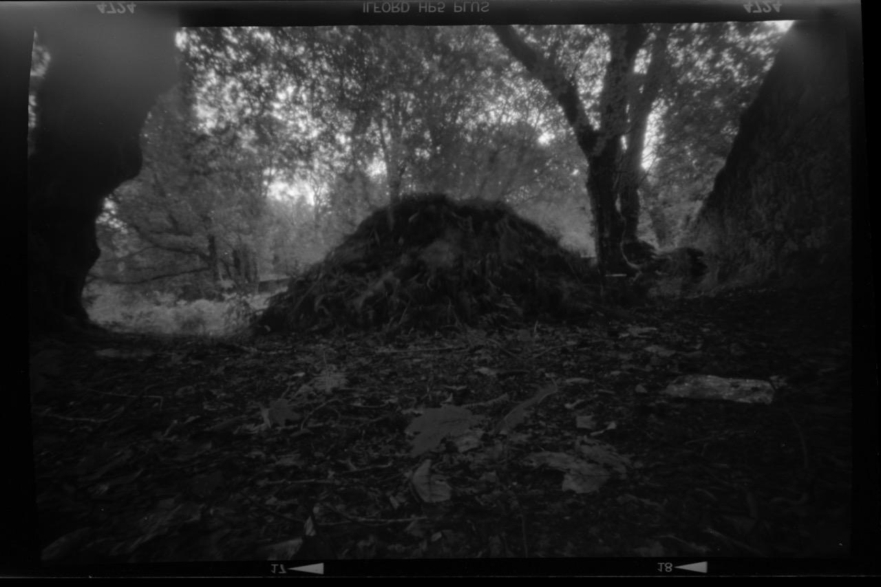 Vorige week werkte ik in Aros Garden, een oude, ommuurde tuin, compleet overwoekerd door adelaarsvarens. Met een aantal eilanders begonnen we aan een meerjarig traject om de tuin weer toegankelijk voor de gemeenschap te maken. In de stromende regen trokken we drie dagen lang varens uit. Doordat we verspreid over de tuin aan het werk waren, kaatsten stemmen, hoe sporadisch deze ook klonken, af tegen de muren, maar omdat we elkaar door de hoge varens niet altijd zagen, begonnen we elkaar via andere zintuigen waar te nemen en zo te snappen hoe plomp wij ons tot de grote groene ruimte verhielden. Het was mooi om samen dezelfde handeling uit te voeren en gaandeweg langzaam een logisch systeem te ontwikkelen: varen uittrekken, onder je arm steken, de bundel overdragen naar je schouder en dan afvoeren. Twee van ons ontfermden zich over de composthoop-in-wording en bouwden een imposante straalsgewijze berg op wat deed denken aan een rituele handeling.