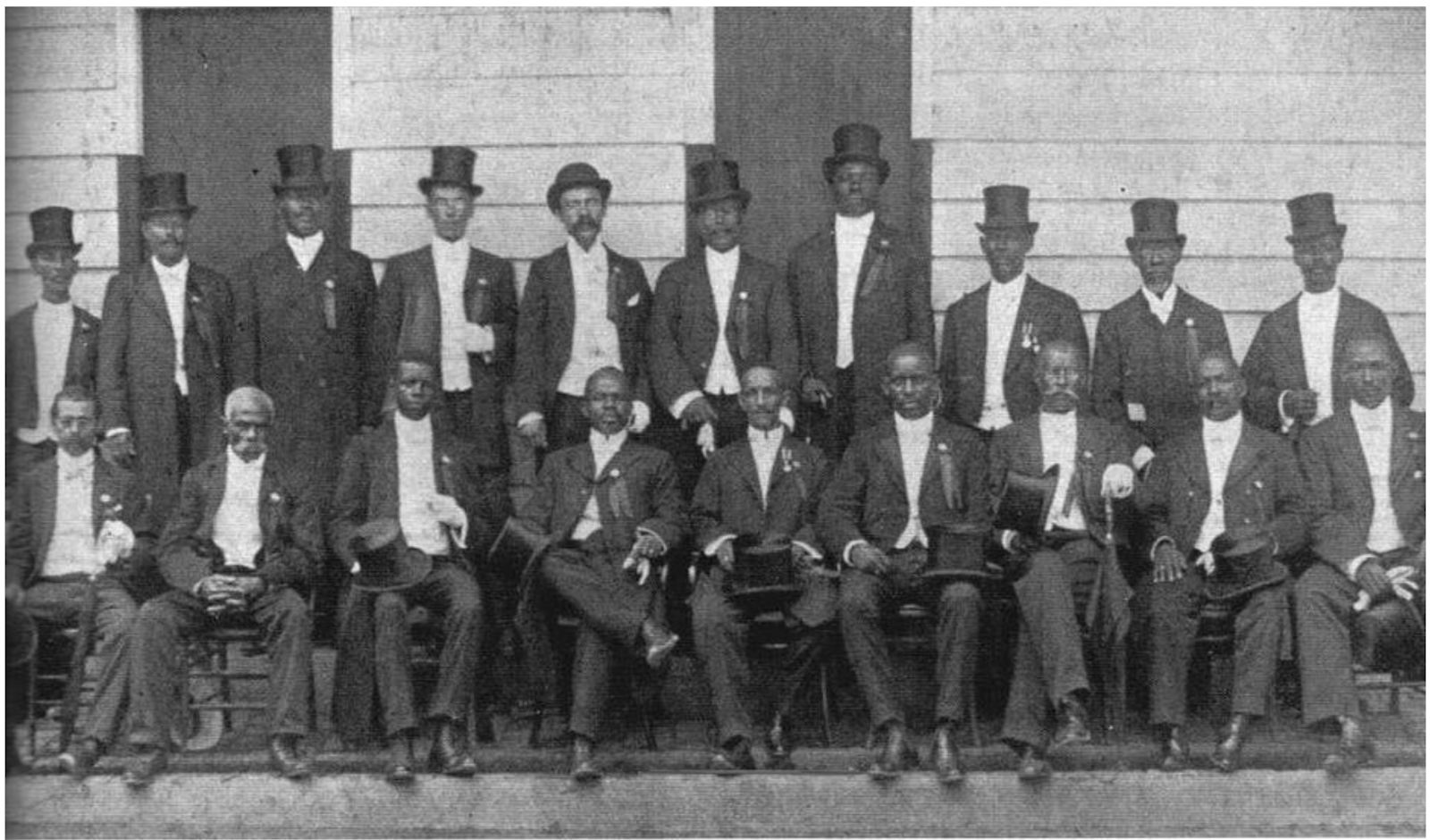 Dat waren, net als de illusionisten, ook mannen met een pak en hoge hoed, en tja, het lijkt ook toegeven aan het westers ideaalplaatje, poserend voor een koloniaal gebouw. Maar het voelt ook als een soort middelvinger, van: kijk, wij kunnen dit ook. We zijn hier, neem ons serieus.
