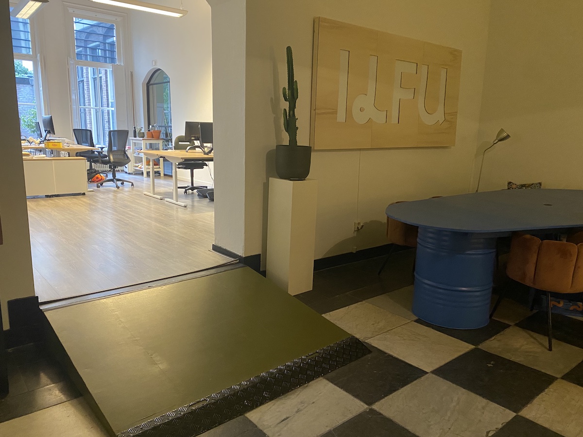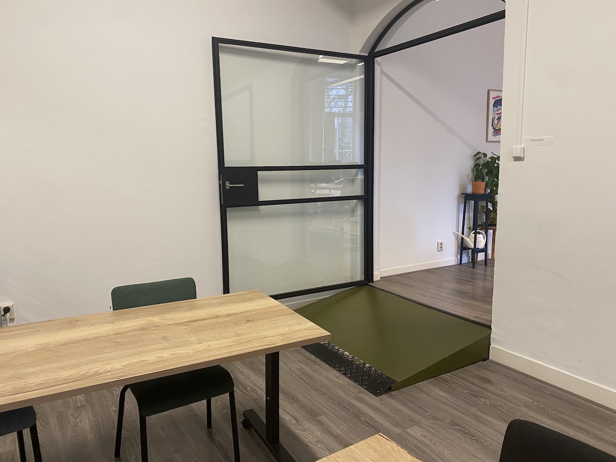 De twee drempels die een bezoeker moet nemen om in de cursusruimte of bij het toilet te komen zijn te zien op de onderstaande afbeeldingen.