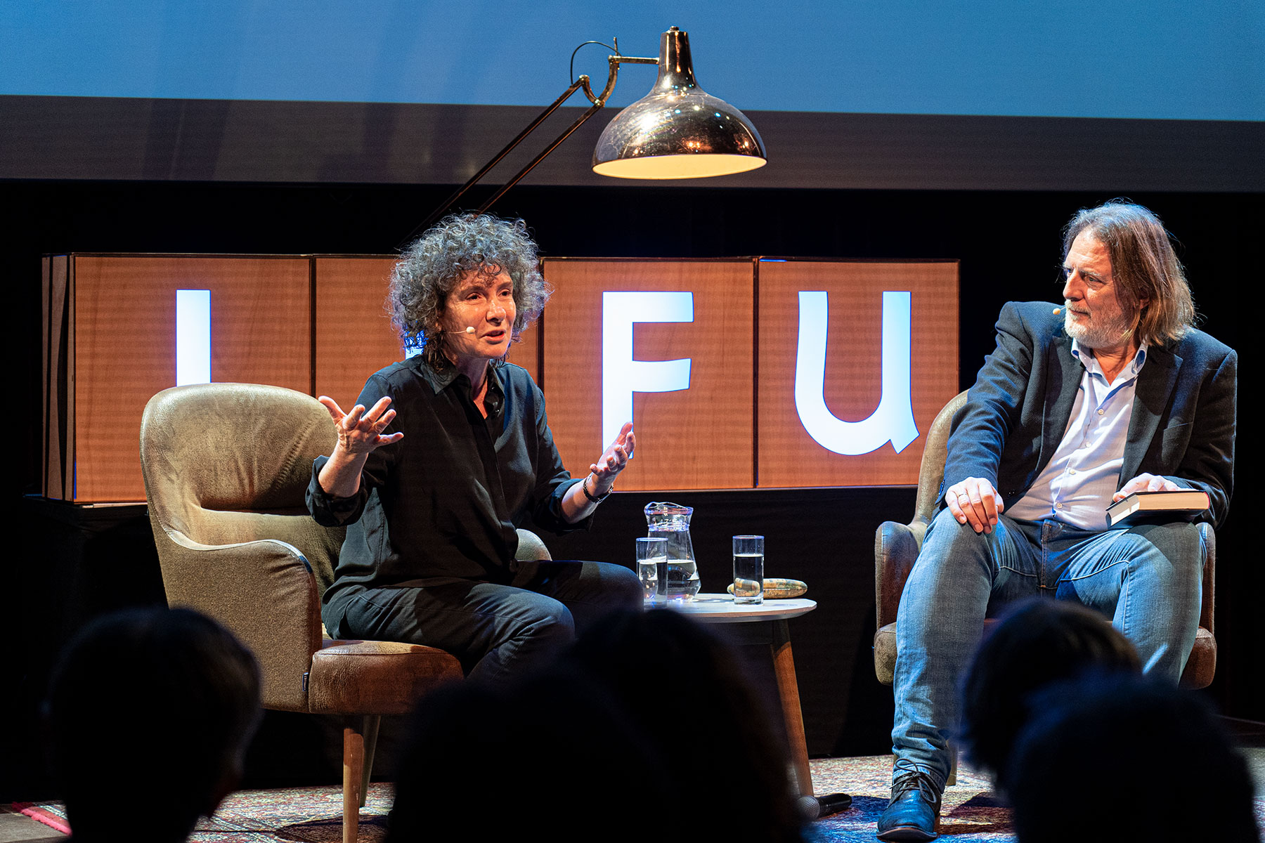 Jeanette Winterson (1959) is auteur van achttien boeken, waaronder Waarom gelukkig zijn als je normaal kunt zijn, Sinaasappels zijn niet de enige vruchten en De passie. Haar werk is met talrijke prijzen bekroond, waaronder de Whitbread Award voor beste debuutroman (voor Sinaasappels zijn niet de enige vruchten), de E.M. Forster Award en de Stonewall Award. In 2013 verscheen De Schemerpoort, een horrorverhaal over de vervolging van vermeende heksen in het Engeland van de zeventiende eeuw. In december 2016 verscheen de bundel Kerstdagen. Haar roman Frankusstein verscheen in de zomer van 2019, waarover ze sprak tijdens een ILFU Book Talk. In 2021 verscheen 12 bytes, een essaybundel over de implicaties van kunstmatige intelligentie. In september 2023 presenteren we op het ILFU samen met uitgeverij Pluim Wintersons nieuwe boek De nachtzijde van de rivier, een maand voordat de Engelse uitgave verschijnt.